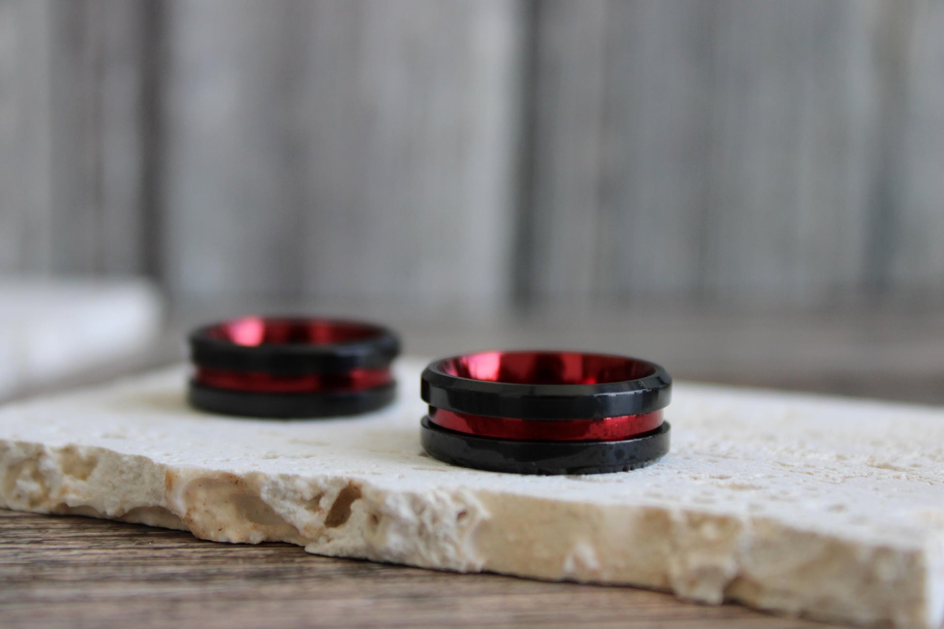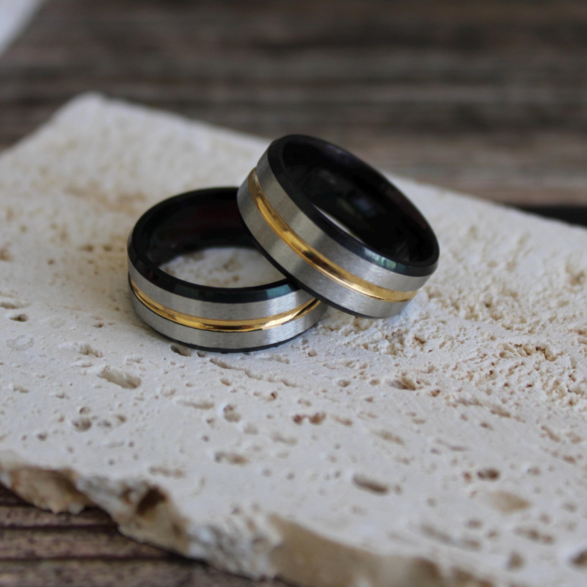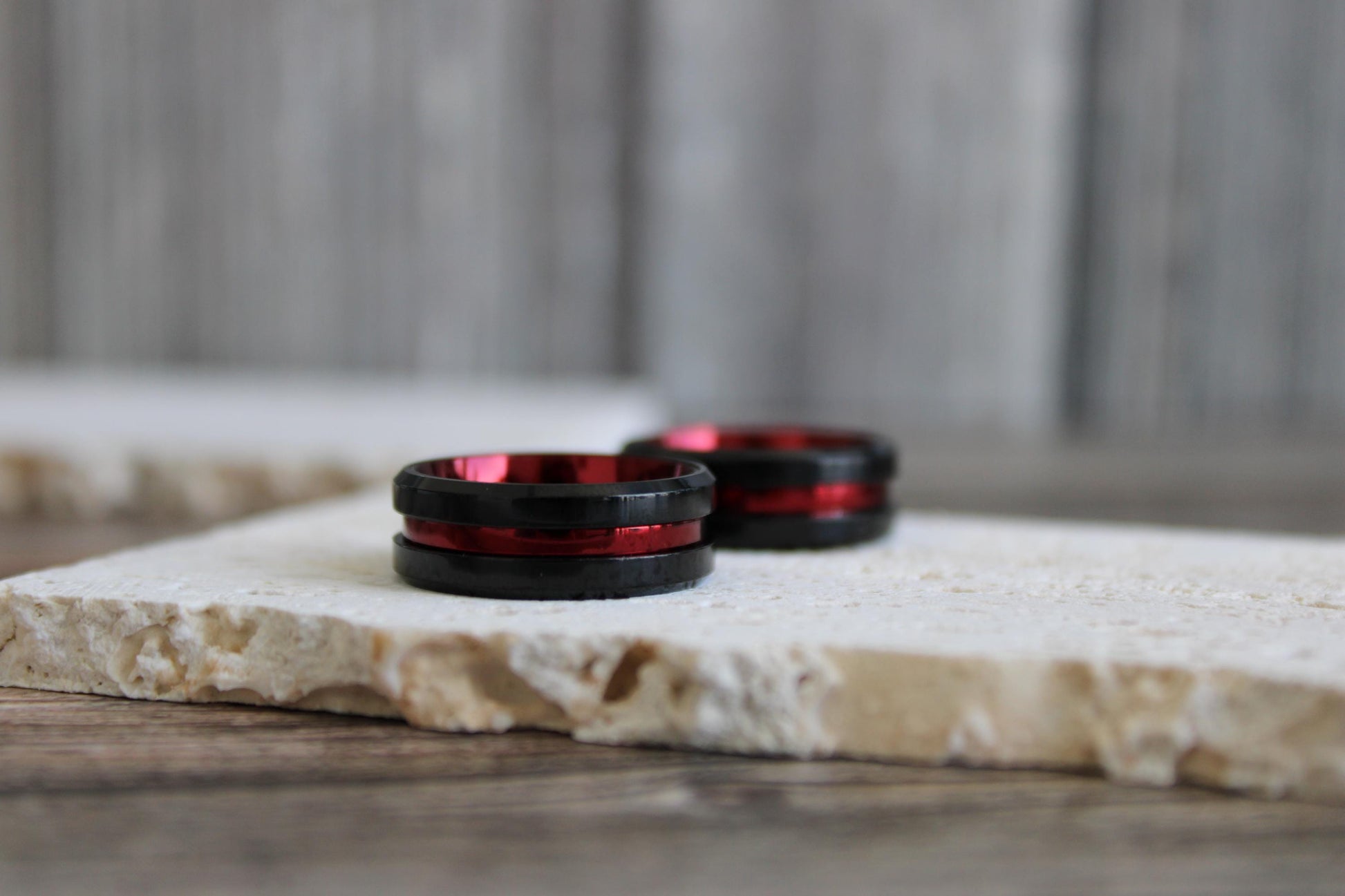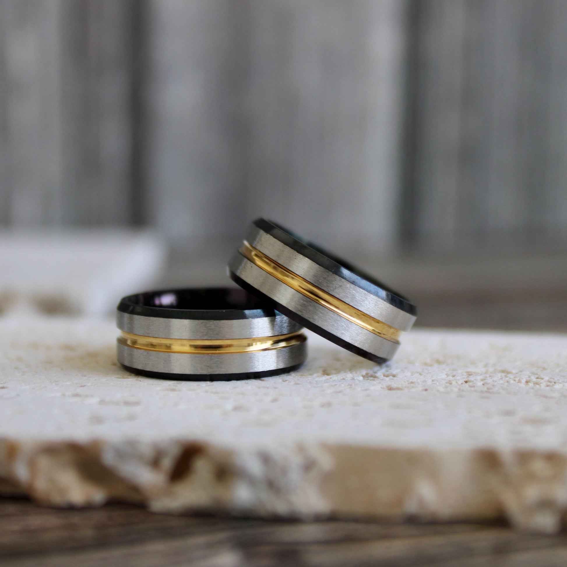 Titanium Black Ring Black Blue Tungsten Ring | Mens Wedding Ring Blue | Black Tungsten Brushed Thin Blue Line Wedding Band Ring | Blue Wedding Band