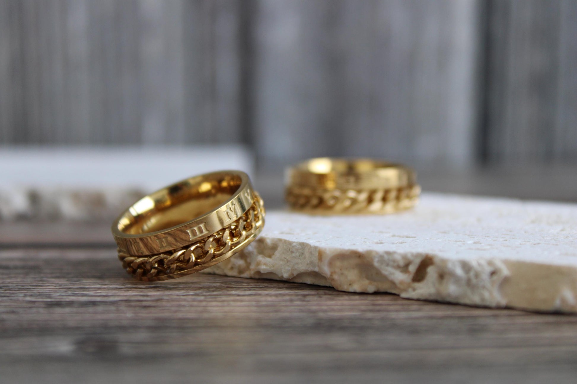 Tungsten Anti-Stress Ring for Men , designed to combine style and calm in one wearable accessory. Crafted with a sleek titanium finish, these rotatable spinner rings feature an elegant chain design in three striking colors: gold and neon. Smooth 360° spinning action helps relieve anxiety and stress, making it a perfect fidget-friendly anxiety ring for busy days or mindful moments.