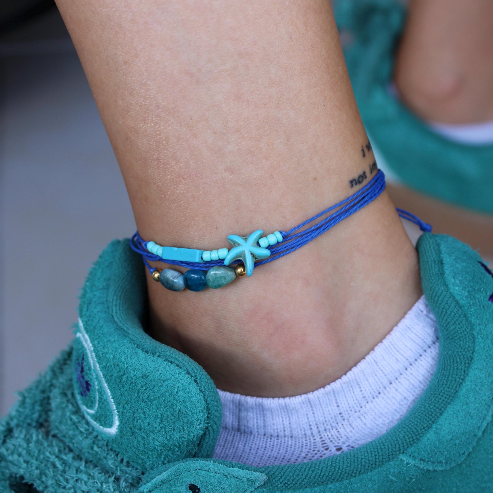 Surfer Beach Anklet Set 8Pcs - Womens Boho Ethno Ankle Bracelet - Blue Beaded Ankle - Beach Anklet, Surfer Anklet, Gift For Her